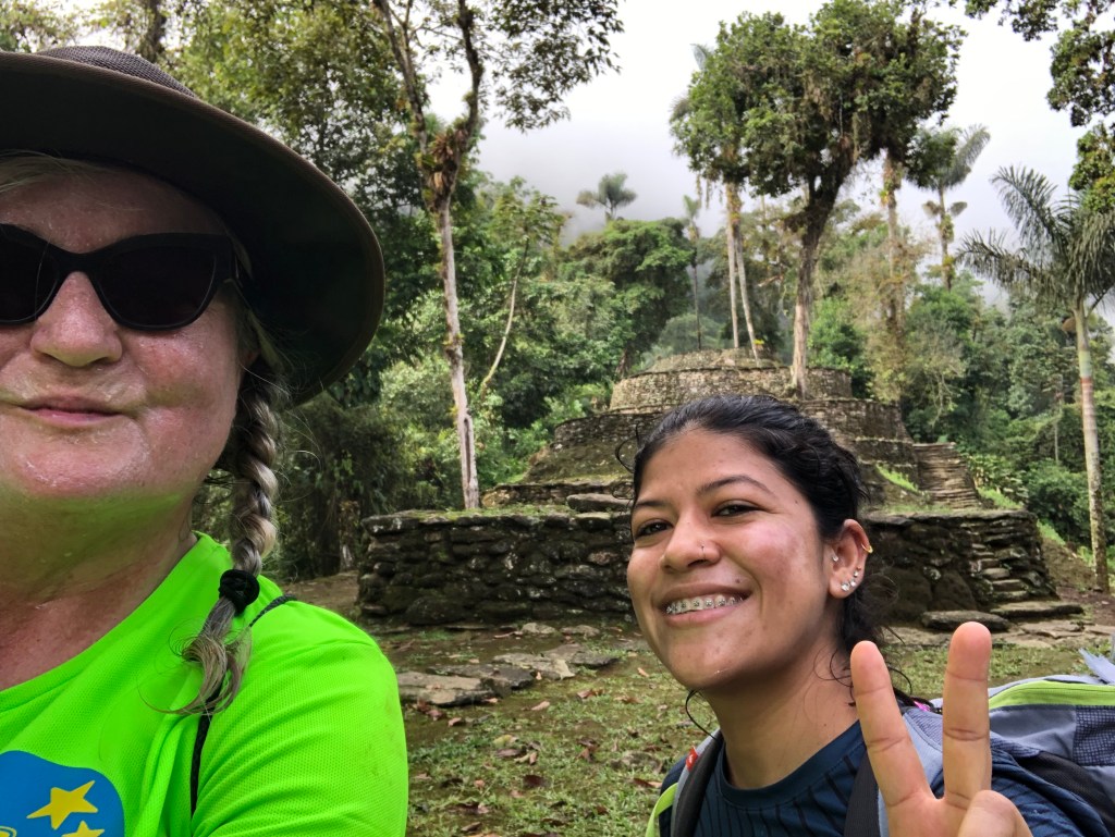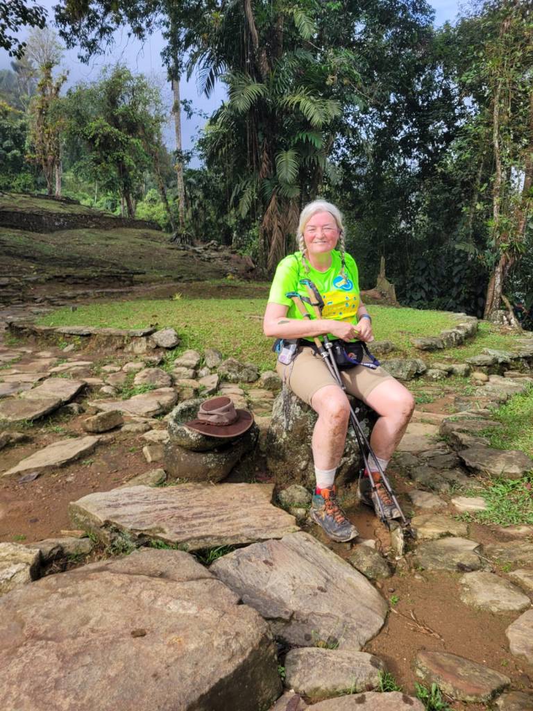 Cross a rope bridge over the river to see for the first time the task ahead of us! 1200 ancient stone “steps”, irregular foot-holes nearly vertical. I could never have got up (and down) these without the help of one of the Magic Tour Colombia local guides, Brian.