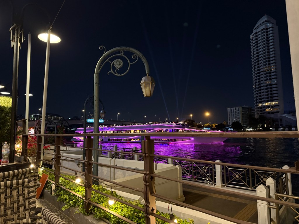 Enjoyed watching the dinner cruise boats but the noisy and repetitive renditions of “Happy Birthday” were best enjoyed out of earshot.