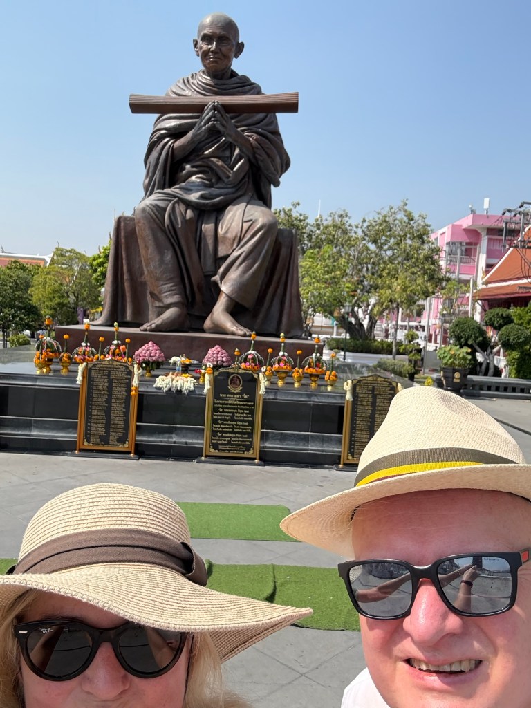 Hot and tired we emerged into shops hiring out traditional costumes for Thai nationals to wear to Wat Arun the temple of Dawn. It was beautiful but crowded.